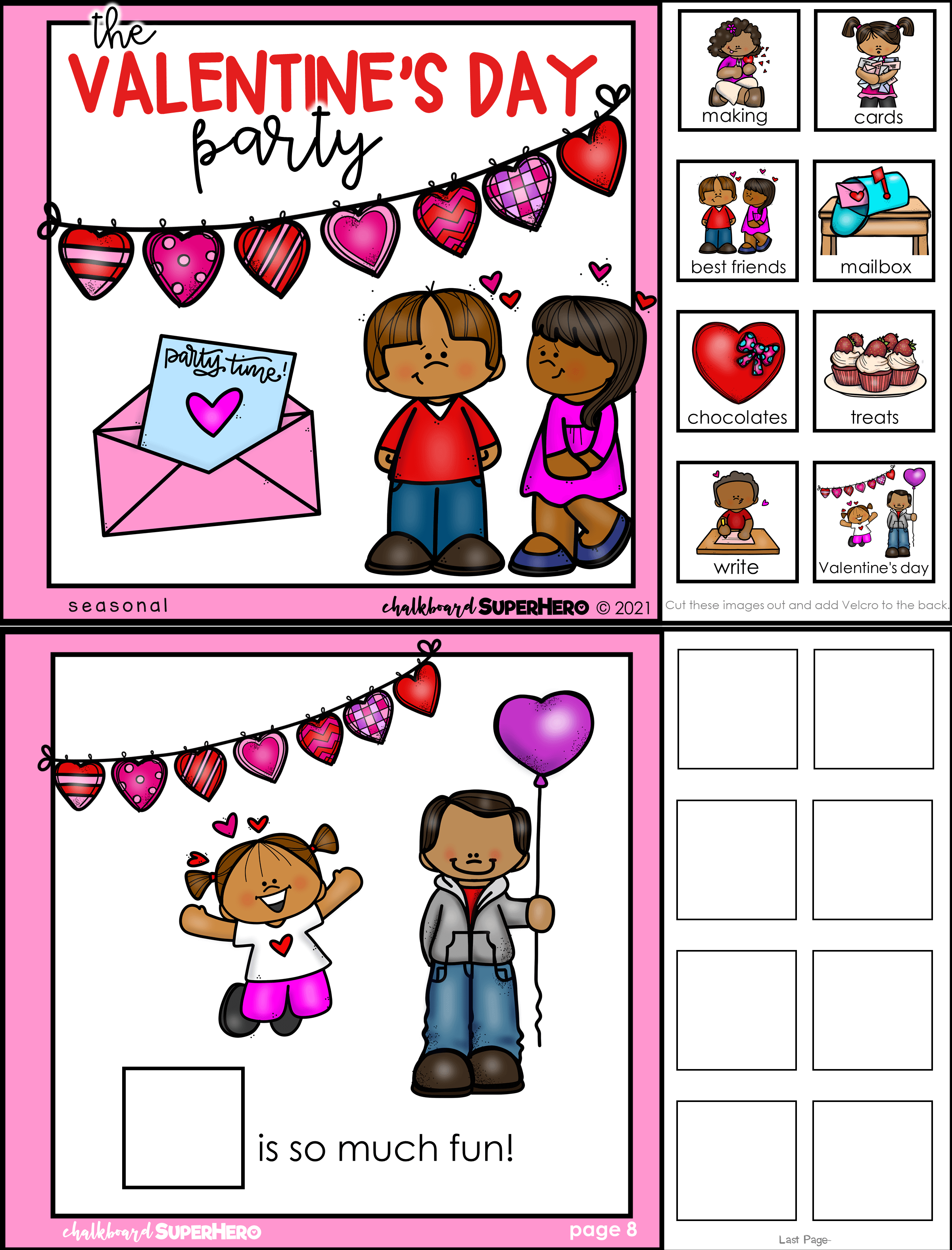 * adapted book: The Valentine’s Day Party (a guide on how to assemble too)