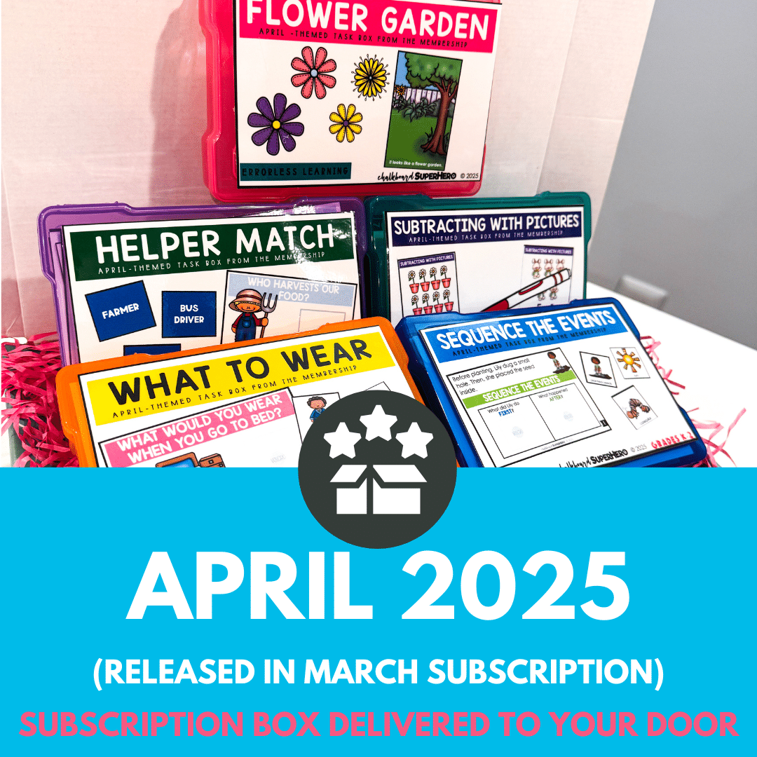 Use these April task boxes for literacy and math centers, independent work time, early finisher activities, intervention groups, or structured work systems. They work well for morning work, sub plans, and routines where students need hands-on, independent practice.