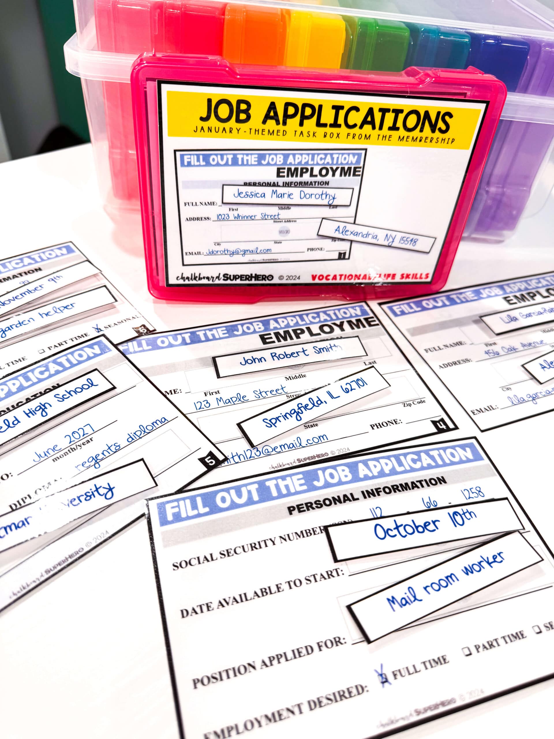 - Each task card will be laminated with added Velcro if necessary